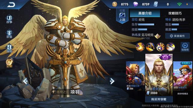 项羽的苍穹之光添加了全屏背景,以及模型大幅优化,成为了六翼天使。